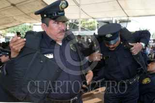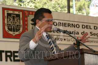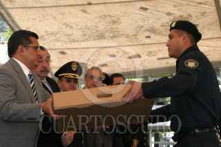 MÉXICO, D.F., 22NOVIEMBRE2006.- Joel Ortega, Secretario de Seguridad Pública del DF, entregó chalecos antibalas nivel 3-A a policias, en una ceremonia realizada en la unidada de la SSP ubicada en Cecilio Robelo. FOTO: MOISÉS PABLO/CUARTOSCURO.COM