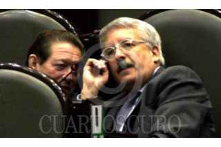 Rafael Rodríguez Barrera, nuevo coordinador parlamentario del PRI en San Lázaro, conversa con el diputados Oscar Levin Coppel. FOTO: Pedro Mera/CUARTOSCURO.COM