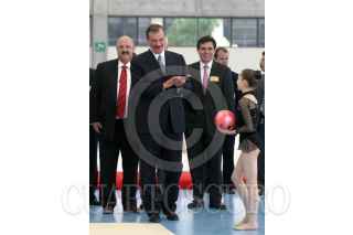 MÉXICO, D.F., 27NOVIEMBRE2006.- Vicente Fox Quesada, Presidente de la República y Reyes Tamez Guerra, Secretario de Educación Pública, observan a unas gimnastas durante un recorrido por el Centro Nacional de Alto Rendimiento, que fue inaugurado de forma oficial por el mandatario. FOTO: MOISÉS PABLO/CUARTOSCURO.COM