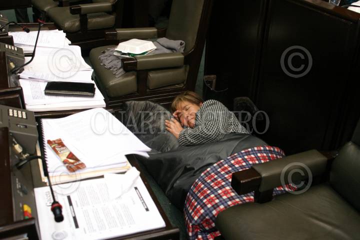 MÉXICO, D.F., 28NOVIEMBRE2006.- A la diputada perredista Aurora Cervantes la venció el sueño de arias horas de jaloneos y patadas entre diputados del PRD y del PAN por tomar el control de la tribuna legislativa. FOTO: MOISÉS PABLO/CUARTOSCURO.COM