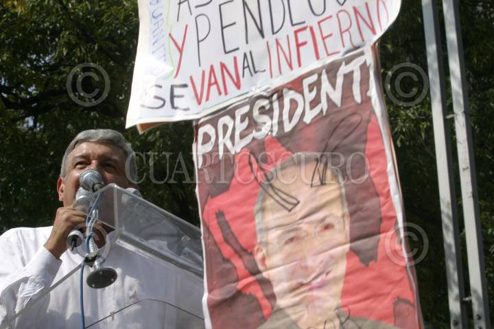 MEXICO, D.F. 01DICIEMBRE2006.- Andrés Manuel López Obrador, lider del Frente Amplio Progresista durante su intervención en el mitin que se llevó a cabo en vallas de seguridad que impedian el paso hacia el Auditorio Nacional. FOTO: NELLY SALAS/CUARTOSCURO.COM