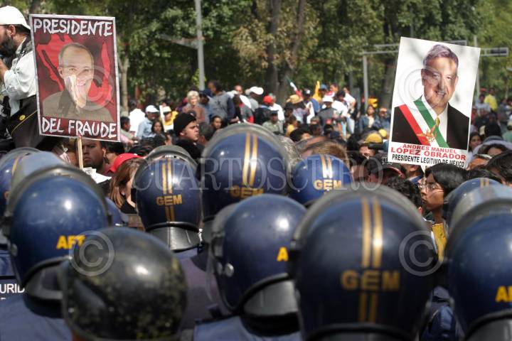 MÉXICO, D.F., 01DICIEMBRE2006.- Marcha sobre el avenida Reforma del Frente Amplio Progresista en repudio de la toma de protesta de Felipe Calderón, Presidente Constitucional de México. FOTO: MOISÉS PABLO/CUARTOSCURO.COM