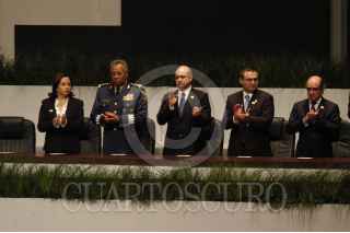 MÉXICO, D.F. 01DICIEMBRE2006.- Patricia Espinoza, secretaria de Relaciones Exteriores; Guillermo Galván, SEDENA; Eduardo Sojo, economía; Genaro García Luna, PGR y Luis Tellez, Comunicaciones y Transporte, durante el mensaje a la nación que dio Felipe Calderón Hinojosa, presidente de los Estados Unidos Mexicanos. FOTO: IVÁN STEPHENS/CUARTOSCURO.COM