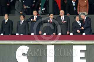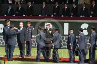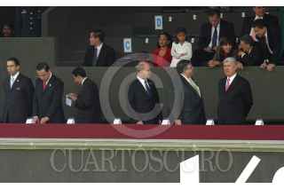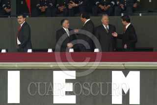 MÉXICO, D.F. 01DICIEMBRE2006.- Mariano Azuela, presidente de la Suprema Corte de Justicia de la Nación y Jorge Zermeño, presidente de la mesa directiva de la Cámara de Diputados durante los honores que le rindieron las fuerzas armadas al presidente de la nación en el Campo militar Marte. FOTO: IVÁN STEPHENS/CUARTOSCURO.COM