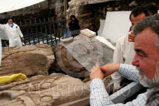 MÉXICO, D.F., 02DICIEMBRE2006.- El jefe de Gobierno local, Alejandro Encinas, cedió el predio de la Casa de las Ajaracas al Instituto Nacional de Antropologia e Historia, en donde la institución realiza excavaciones para rescatar un monolito hallado recientemente. FOTO: ISAAC ESQUIVEL/CUARTOSCURO.COM
