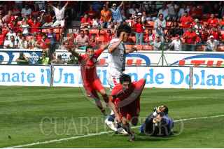 TOLUCA, ESTADO DE MÉXICO 03DICIEMBRE2006.- Con gol de Vicente Sánchez el equipo de los Diablos Rojos del Toluca venció a los Tuzos del Pachuca, con lo cual se convierte en el primer finalista del torneo de apertura del fútbol mexicano. FOTO: GUILLERMO PEREA /CUARTOSCURO.COM