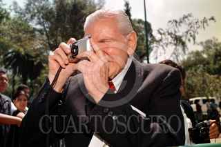 El ingeniero Cuauhtemoc Cárdenas a su llegada al Foro de discusión sobre el cambio realizado en un salón de fiestas en la delegación Gustavo A. Madero. FOTO: David Bolaños/CUARTOSCURO.COM