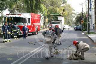 MÉXICO D.F. 04DICIEMBRE.- La avenida Miguel Angel de Quevedo, fue obstruida al caer las ramas de un árbol, elementos del cuerpo de bomberos acudieron a realizar las labores de limpieza de la avenida. FOTO: ADRIANA VALERIA ALVAREZ/CUARTOSCURO.COM