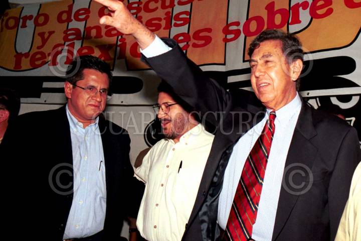 El ingeniero Cuauhtemoc Cárdenas a su llegada al Foro de discusión sobre el cambio realizado en un salón de fiestas en la delegación Gustavo A. Madero. FOTO: David Bolaños/CUARTOSCURO.COM