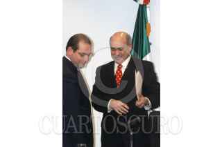 MÉXICO, D.F 04DICIEMBRE2006.- Carlos Arce, subsecretario de normatividad, inversión extranjera y prácticas comerciales internacionales y Eduardo Sojo, secretario de economía; durante su primer acto como funcionarios de la Secretaría de Economía. FOTO: IVÁN STEPHENS/CUARTOSCURO.COM