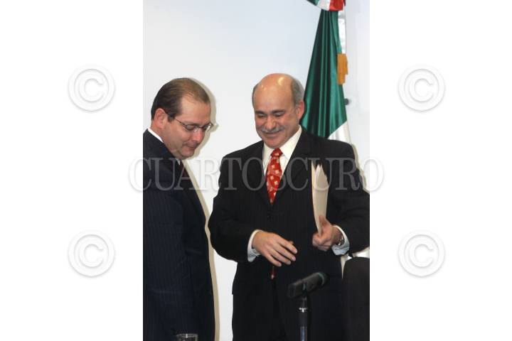 MÉXICO, D.F 04DICIEMBRE2006.- Carlos Arce, subsecretario de normatividad, inversión extranjera y prácticas comerciales internacionales y Eduardo Sojo, secretario de economía; durante su primer acto como funcionarios de la Secretaría de Economía. FOTO: IVÁN STEPHENS/CUARTOSCURO.COM