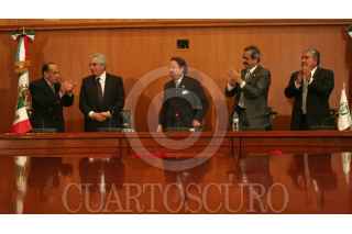 MÉXICO, D.F. 04DICIEMBRE2006.- Juan Molinar Horcasitas, tomó protesta como nuevo titular del IMSS, afirmó que esta institución no será privatizada. Juan Moises Calleja, secretario genral y Fernando Flores, director general del IMSS estuvieron presentes. FOTO: PAOLA HIDALGO/CUARTOSCURO.COM