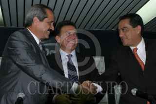 MÉXICO, D.F 04DICIEMBRE2006.- Jose Angel Cordoba Villalobos Secretario de Salud, Miguel Angel Yunes director del Instituo de Seguridad y Servicios Sociales de los Trabajadores del Estado (ISSSTE) y Enrique Moreno Ex director del (ISSSTE) en la entrega de instalaciones de la dependencia. FOTO: SAUL LOPEZ/CUARTOSCURO.COM