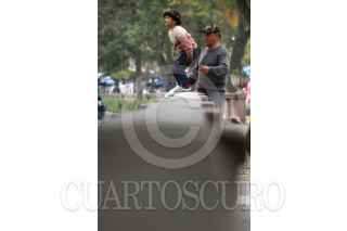 MEXICO D.F. 08DICIEMBRE2006.- Un niño bien abrigado es cuidado por su padre al pasear por el Bosque de Chapultepec. FOTO: GUILLERMO PEREA/CUARTOSCURO.COM
