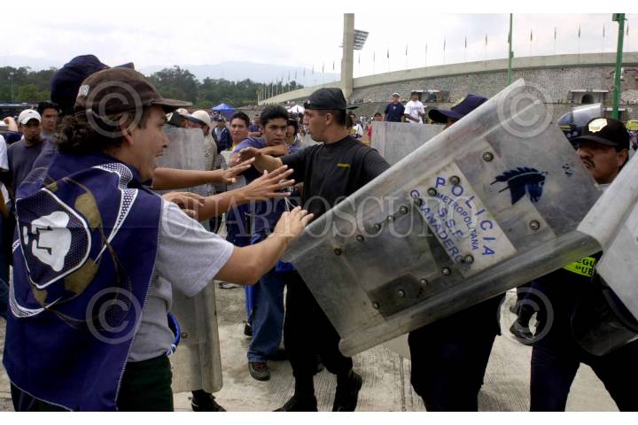 Al término del encuentro entre Pumas y América, alguno aficionados se enfrentaron a golpes con granaderos de la S.S.P. FOTO: Pedro Mera/CUARTOSCURO.COM