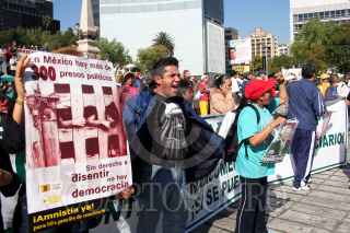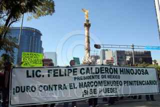 MÉXICO, D.F., 10DICIEMBRE2006.- Un grupo de manifestantes que dijo pertenecer a la Unión Mexicana de Familiares de Detenidos A. C. se manifestó en el Angel de la Independencia al mismo tiempo que simpatizantes de la Resistencia Civil Pacífica y del APPO, lo cual fue visto como una provocación. FOTO: ISAAC ESQUIVEL/CUARTOSCURO.COM