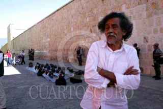 OAXACA, OAXACA 11 DE DICIEMBRE 2006.- Francisco Toledo afuera del Centro de Artes Graficas de Oaxaca, observando el ambiente que se vive actualmente en el estado. FOTO: MAX NUÑEZ/CUARTOSCURO.COM