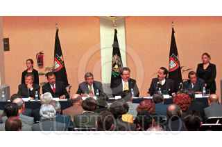 Porfirio Muñoz Ledo presentó esta mañana las conclusiones de su labor para la Reforma del Estado. En la foto, el academico Fernando Serrano Migallón y Enrique Jackson acompañan al embajador Muñoz Ledo. FOTO: Oswaldo Ramírez/CUARTOSCURO.COM