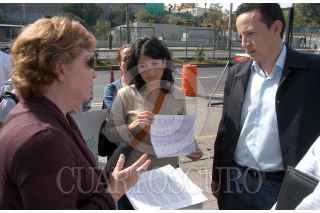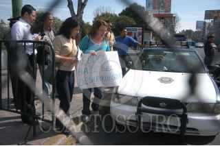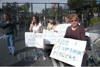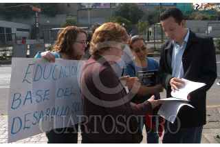 MEXICO D.F. 17DICIEMBRE2006.- La profesora Geogina González con 25 años de carreara magiterial hace entrega de una carta a Alberto Cabrera Hernández jefe del deparatamento de la secreataria particular de la presidencia, después de de manifestarse en contra del presupuesto para la educación publica, esto a las afueras de residencia oficial de los Pinos. FOTO: GUILLERMO PEREA /CUARTOSCURO.COM