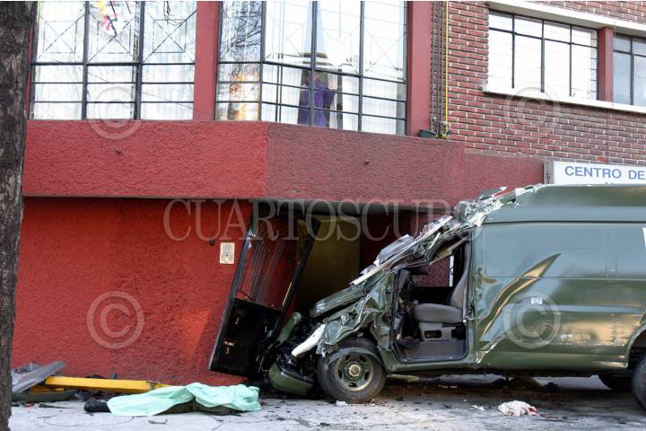 MÉXICO D.F. 17DICIEMBRE2006.- Una ambulancia del ejercito cayo de un puente al incorporarse al circuito interior dando como resultado, un soldado muerto y un herido y daños a una casa. FOTO: PEDRO MARRUFO/ CUARTOSCURO.COM