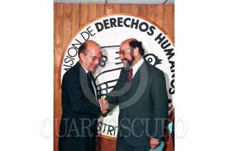 José Luis de la Barreda, presidente de la Comisión Nacional de Derechos Humanos es acompañado por María de los Angeles Moreno líder del PRI en la Asamblea Legislativa, durante el último informe de actividades de la Comisión a cargo de De la Barreda. FOTO: Susana Navarrete/CUARTOSCURO.COM
