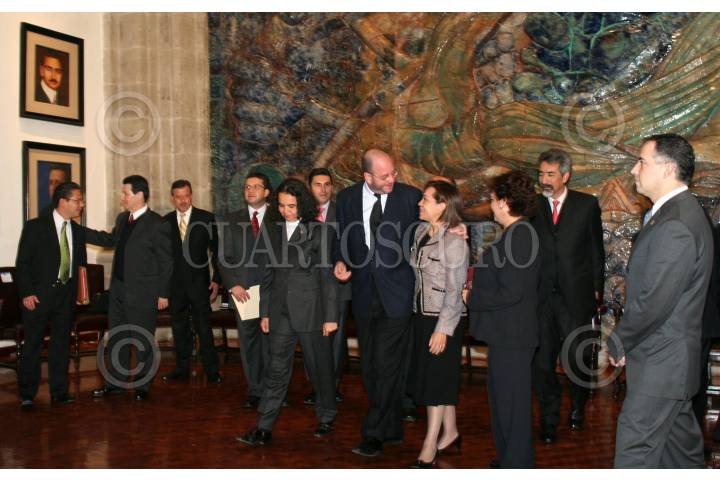MÉXICO, D.F. 18DICIEMBRE2006.- La secretaria de educación pública, Josefina Vasquez Mota durante la presentación de su equipo de trabajo. En la Imagen, Sergio Vela, titular de CONACULTA, María Teresa Franco, directora del INBA, Dolores del Río, representante del Instituto de Educación para Adultos, Rodolfo Tuiran, subsecretario de educación superior y Carlos Hermosillo, director de la CONADE. FOTO: PAOLA HIDALGO/CUARTOSCURO.COM