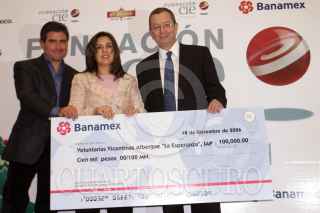 MÉXICO, D.F., 18DICIEMBRE2006.- Rodrígo González Calvillo, CIE, Mauricio Torres, durante la entrega de un cheque del albergue "La Esperanza", IAP, a la fundación CIE en el marco de una posada realizada en la Granja de las Americas. FOTO: MOISÉS PABLO/CUARTOSCURO.COM