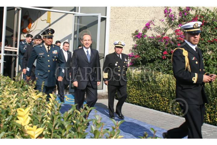 MÉXICO, D.F. 19DICIEMBRE2006.- El presidente Felipe Calderón Hinojosa desayunó este martes con personal naval encabezado por el secretario de Marina-Armada de México, Mariano Francisco Saynez, con motivo del fin de año. En la imagen con Guillermo Galván, secretario de la defensa nacional durante la firma del libro oficial. FOTO: PAOLA HIDALGO/CUARTOSCURO.COM