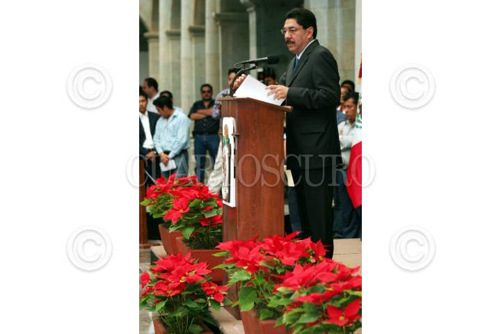 OAXACA, OAXACA19DICIEMBRE2006.- El gobernador oaxaqueño Ulises Ruíz y Bulmaro Rito, presidente de la mesa directiva del congreso local durante la ceremonia de la instalación del foro de la Reforma del Estado. FOTO: AMAURY GUADARRAMA/CUARTOSCURO.COM