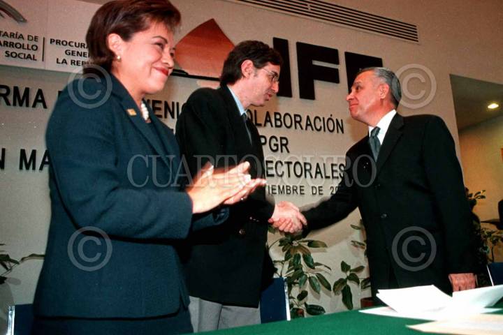 Josefina Vázquez Mota, José Woldemberg y Rafael Macedo de la Concha, durante la firma de convenio de cooperacion en materia de delitos electorales. FOTO: Pedro Mera/CUARTOSCURO.COM