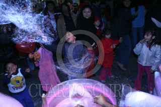MÉXICO, D.F., 20DICIEMBRE2006.- En el Monumento a la Revolución, un grupo de niños saltan por un poco de algodón de azúcar, el cual se escapa volando mientras el algodonero lo elabora. FOTO: ISAAC ESQUIVEL/CUARTOSCURO.COM
