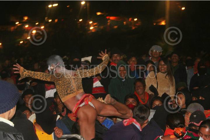 OVENTIC, CHIAPAS. 01ENERO2007.- Un adherente integrante del sector "Los otros amores" realiza un performance para las Bases de apoyo del Ejercito Zapatista de Liberacion Nacional durante la celebracion del 13 aniversario del levantamiento armado durante el Primer Encuentro entre los Pueblos Zapatistas y los Pueblos del Mundo al que asistieron aproximadamente 2000 mil adherentes y observadores de diferentes paises. FOTO: MOYSES ZUÑIGA SANTIAGO/CUARTOSCURO.COM