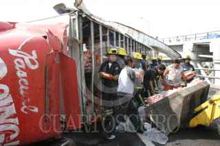 MÉXICO, D.F.; 02 DE ENERO 2007.- Un trailer cargado con refresco se volco en la parte alta de la avenidad oceania y la calle Eje 1 norte, no hubo lesionados, unicamente años en señalamientos. FOTO: PEDRO MARRUFO/CUARTOSCURO.COM