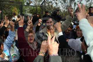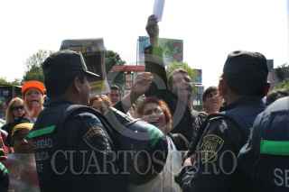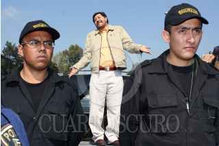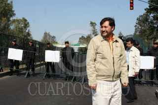 MÉXICO, D.F. 08ENERO2006.- Gerardo Fernández Noroña, vocero del PRD, realizó un plantón afuera de la residencia oficial de Los Pinos. Los manifestantes no pudieron llegar debido a los retenes policiacos que se encuentran afuera de la residencia presidencial. FOTO: PAOLA HIDALGO/CUARTOSCURO.COM