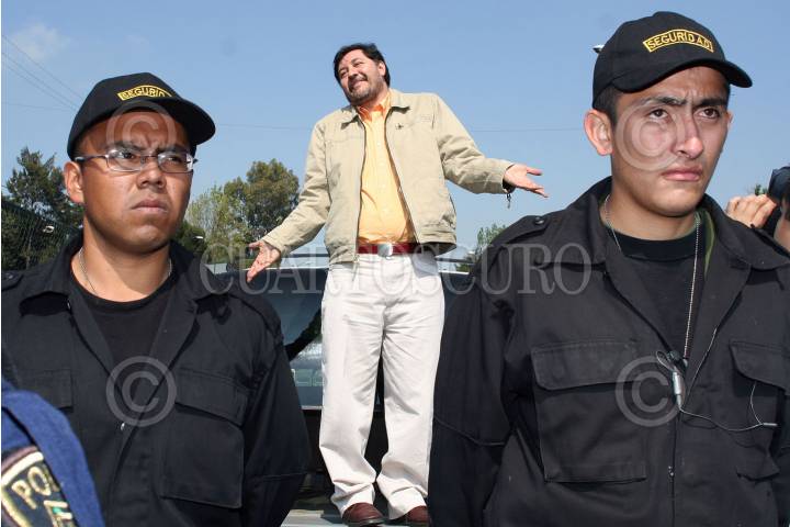 MÉXICO, D.F. 08ENERO2006.- Gerardo Fernández Noroña, vocero del PRD, realizó un plantón afuera de la residencia oficial de Los Pinos. Los manifestantes no pudieron llegar debido a los retenes policiacos que se encuentran afuera de la residencia presidencial. FOTO: PAOLA HIDALGO/CUARTOSCURO.COM
