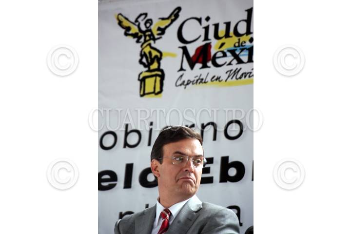 MÉXICO D.F. 09ENERO2007.- Marcelo Ebrad Casaubón jefe de gobierno capitalino, durante la colocación de la primera piedra del centro comercial "Plaza Central" que estara ubicada en las inmediaciones de la Central de Abasto. FOTO: GUILLERMO PEREA /CUARTOSCURO.COM