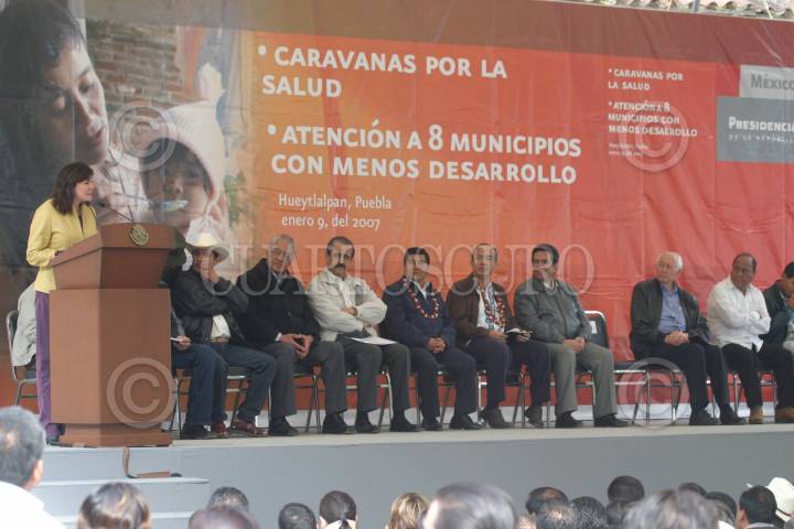 HUEYTLALPAN, PUEBLA 09ENERO2007.- El presidente Felipe Calderon Hinojosa durante su gira de trabajo, durante la cual visito Hueytlalpan donde se anuncio que SEDESOL y FONHAPO invertiran 50 millones de pesos para pisos firmes en Puebla. FOTO:FONHAPO/CUARTOSCURO.COM