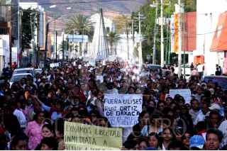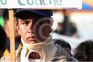 OAXACA, OAXACA, 10ENERO2007.- Una persona lesionada durante los enfrentamientos de la APPO y la SSP protesta de manera pasifica, exigiendo la liberación de los presos politicos. FOTO:MAX NUÑEZ/CUARTOSCURO.COM