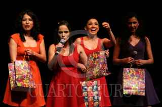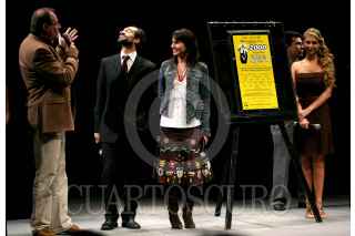 MÉXICO, D.F., 10ENERO2006.- El productor Morris Gilbert, Bruno Bichir, Ana Serradilla e Ingrid Martz durante la develación de la placa por las dos mil representaciones de "Confesiones de mujeres de treinta". FOTO: ISAAC ESQUIVEL/CUARTOSCURO.COM