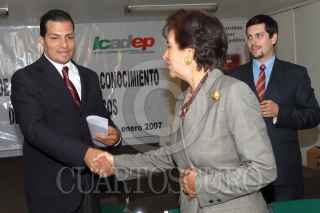 MÉXICO, D.F., 16ENERO2007.- Marco Tulio Zarate Luna, presentó su candidatura a la presidencia nacional del PRI ante el Instituo de Capacitación Política del PRI con la presencia de su presidenta Guadalupe Gomez Maganda, durante el proceso de conocimiento de los documentos básicos del partido al término del evento recibierón su constancia de participación. FOTO: FRANCISCO MARTÍNEZ/CUARTOSCURO.COM
