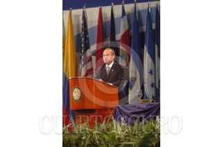 SAN SALVADOR, REPUBLICA DEL SALVADOR 16 DE ENERO DE 2007.- El presidente Felipe Calderón Hinojosa durante el acto conmemorativo del XV aniversario de la firma de los acuerdos de paz de El Salvador. FOTO: IMPERIO RESENDIZ/CUARTOSCURO.COM