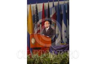 SAN SALVADOR, REPUBLICA DEL SALVADOR 16ENERO2007.- El presidente Calderon Hinojosa durante la ceremonia del acto conmemorativo del XV aniversario de la firma de los acuerdos de paz de El Salvador. FOTO IMPERIO RESENDIZ/CUARTOSCURO.COM