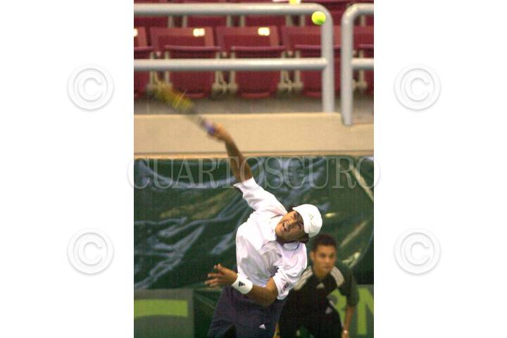 El partido entre Luis Horna y Miguel Gallardo en la Copa Davis tuvo que suspenderse por espacio de 20 minutos, debido a una falla el suministro de energía electrica. FOTO: Pedro Mera/CUARTPOSCURO.COM