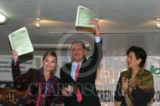 MEXICO, D.F. 17ENERO2007.- Enrique Jackson y Sara Latife Ruíz Chavez, candidatos a la presidencia nacional y secretaria del PRI respectivamente su llegada al centro de capacitacion de cuadros del PRI donde presentaron su propuesta. FOTO: NELLY SALAS/CUARTOSCURO.COM