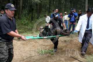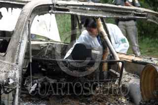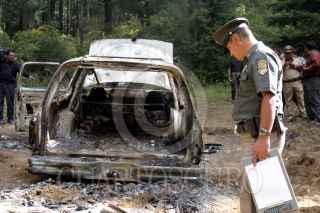 MÉXICO, D.F., 17ENERO2007.- En el bosque de la Marqueza, en el kilómetro 35 de la carretera México-Toluca, fue encontrado un cuerpo totalmente quemado dentro de una camioneta. Según la policía, se trata de un posible ajuste de cuentas. FOTO: PEDRO MARRUFO/CUARTOSCURO.COM