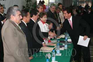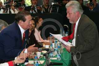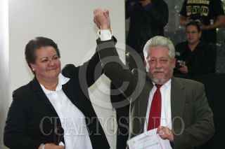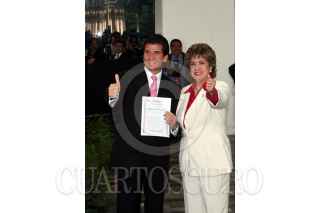 MÈXICO, D.F. 18ENERO2007.- Marco Tulio Zàrate, aspirante a la dirigencia del PRI, acudiò a la sede de dicho partido a registrar su candidatura. En la imagen con Aisha Vallejo, quien contiende por la secretarìa general. FOTO: PAOLA HIDALGO/CUARTOSCURO.COM