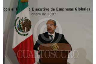 MEXICO, D.F. 18ENERO2007.- El presidente Felipe Calderón Hinojosa durante su intervención en la reunión con Consejeros ejecutivos de empresas globales. FOTO: NELLY SALAS/CUARTOSCURO.COM