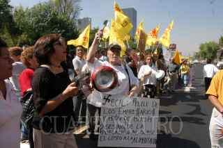 MÉXICO, D.F., 18ENERO2007.- En la Secretaría de Hacienda militantes del PRD protestaron con sarten en mano por los aumentos de los precios de los productos de la canasta básica. FOTO: PEDRO MARRUFO/CUARTOSCURO.COM