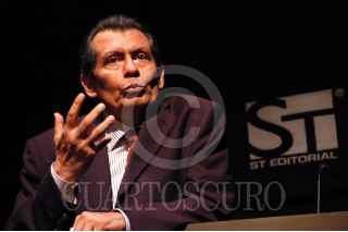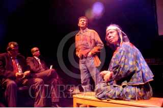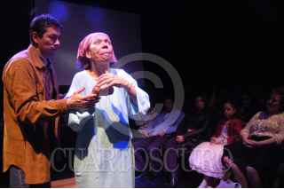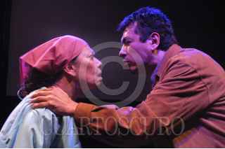 MÉXICO D.F. 23ENERO2007.- Los actores Victor Carpinteiro y Luisa Huertas, durante la presentación del libro "Literatura 2" para bachillerato donde se interpretaron un fragmento de "La Mujer Que Cayo del Cielo" en el Circulo Teatral. FOTO: GUILLERMO PEREA/CUARTOSCURO.COM