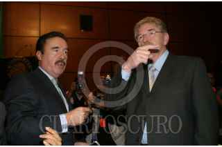 MEXICO, D.F. 24ENERO2007.- Emilio Gamboa Patrón, coordinador de la fracción parlamentaria del PRI en la cámara de diputados y Javier Gonzalez Garza, coordinador del PRD en la cámara de diputados previo a la sesión de la comisión permanente. FOTO: NELLY SALAS/CUARTOSCURO.COM